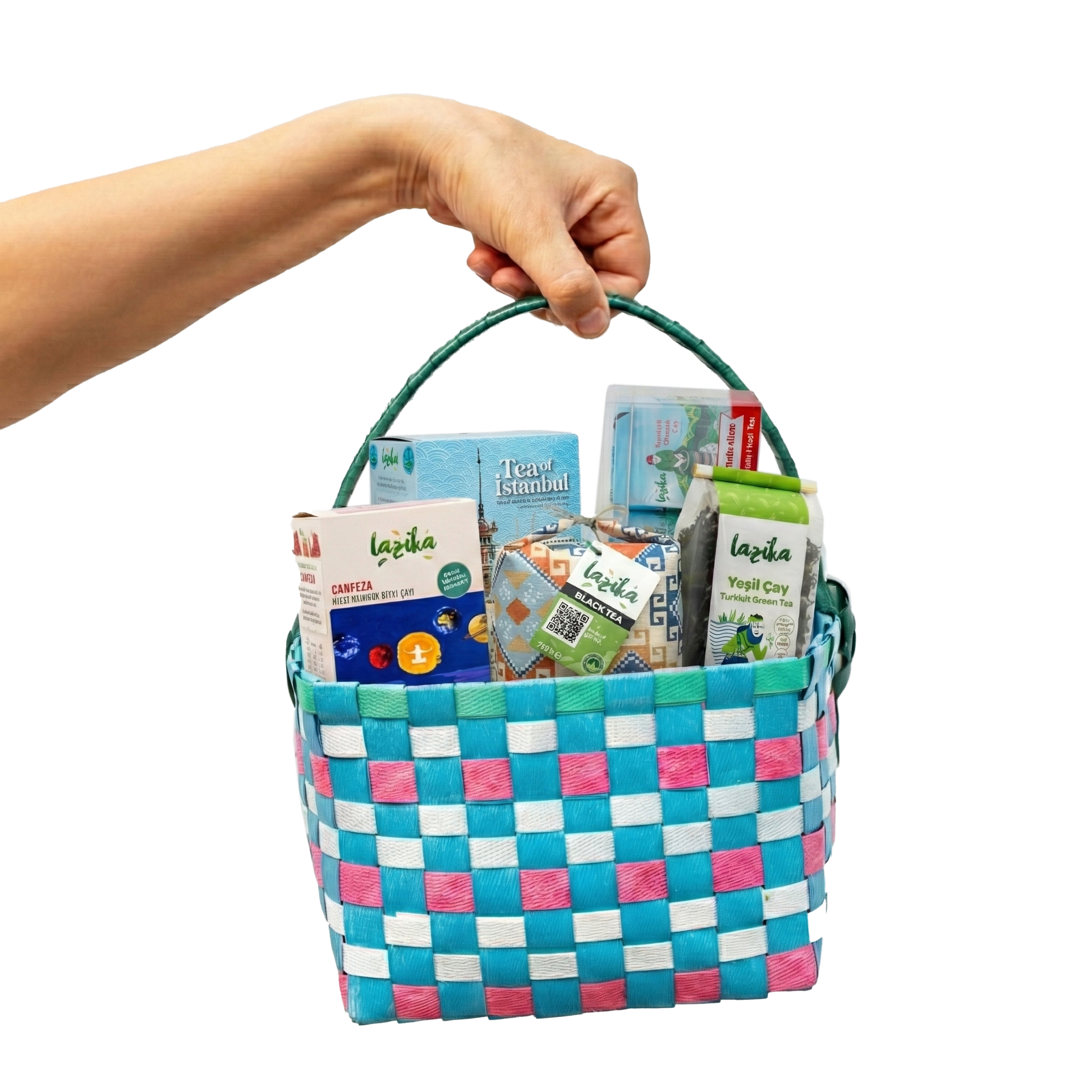 Lazika ile isteyenlere teşekkür ediyorum… El Yapımı Renkli Sepet içerisinde; İstanbul Çayı, El Yapımı 50gr Yeşil Çayımız, Geleneksel Otantik Çay Seti, Bez Ambalaj 400g Siyah Çayımız ve Hisli Harman çay serimizden Canfeza çayımız yer alıyor. Sepet fiyatları: (18x18x13) Not: Sepet renklerinde değişiklik yapılabilir.