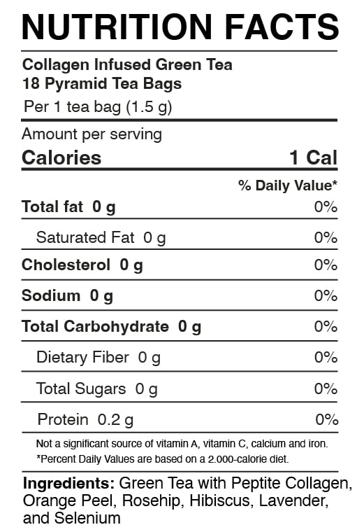 Sığır kaynaklı saf ve yüksek kalitede peptit formundaki kolajen, Lazika’nın geliştirdiği bir üretim methodu ile, Yeşil çaya üretim aşamasında katılmıştır. Bu sayede 1 poşette 237 mg protein var ve üretimimiz kısıtlı.